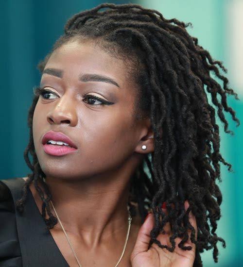 You get the best of both worlds – some locs flowing freely while others are secured in a neat bun.