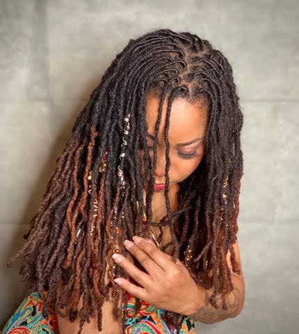 The transition from black to brown should be gradual for the most flattering effect. Great for anyone dipping their toes into the world of colored locs.
