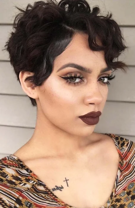 This pixie-inspired cut with wavy texture is perfect for anyone who wants to embrace their natural waves without fuss.