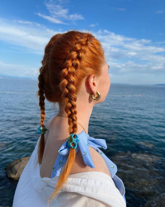 5. Vibrant Dual Braids with a Touch of Whimsy