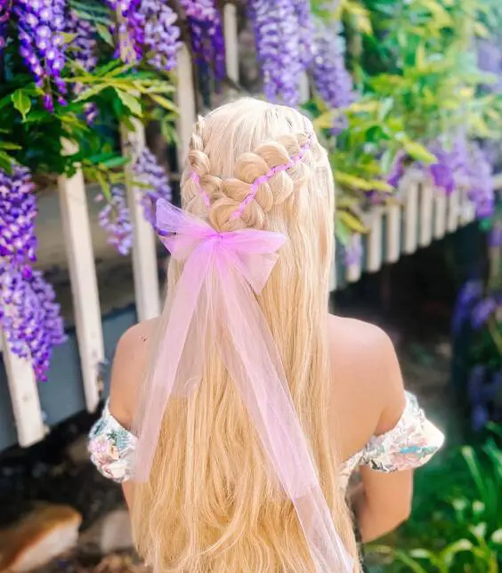 This is pure romance in hair form. The braided crown adds such a feminine touch.