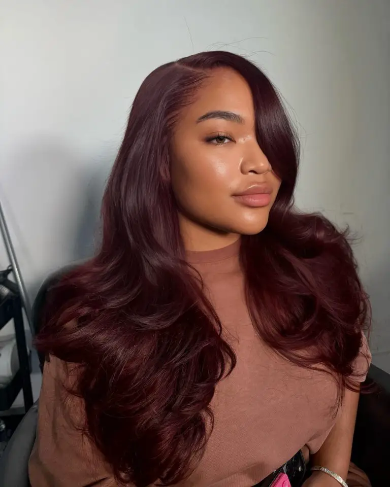 The color is everything with this style. Rich burgundy waves are absolutely stunning.