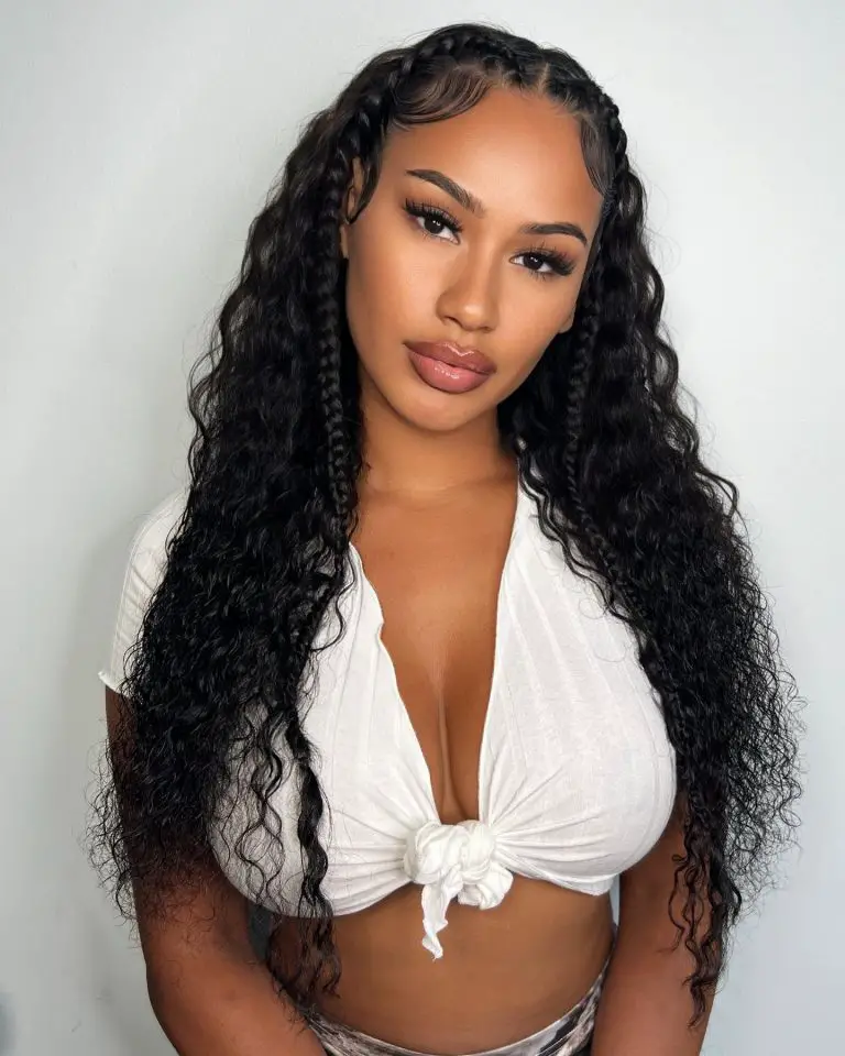 The braids prevent the curls from looking too uniform. It adds that natural, lived-in feel.