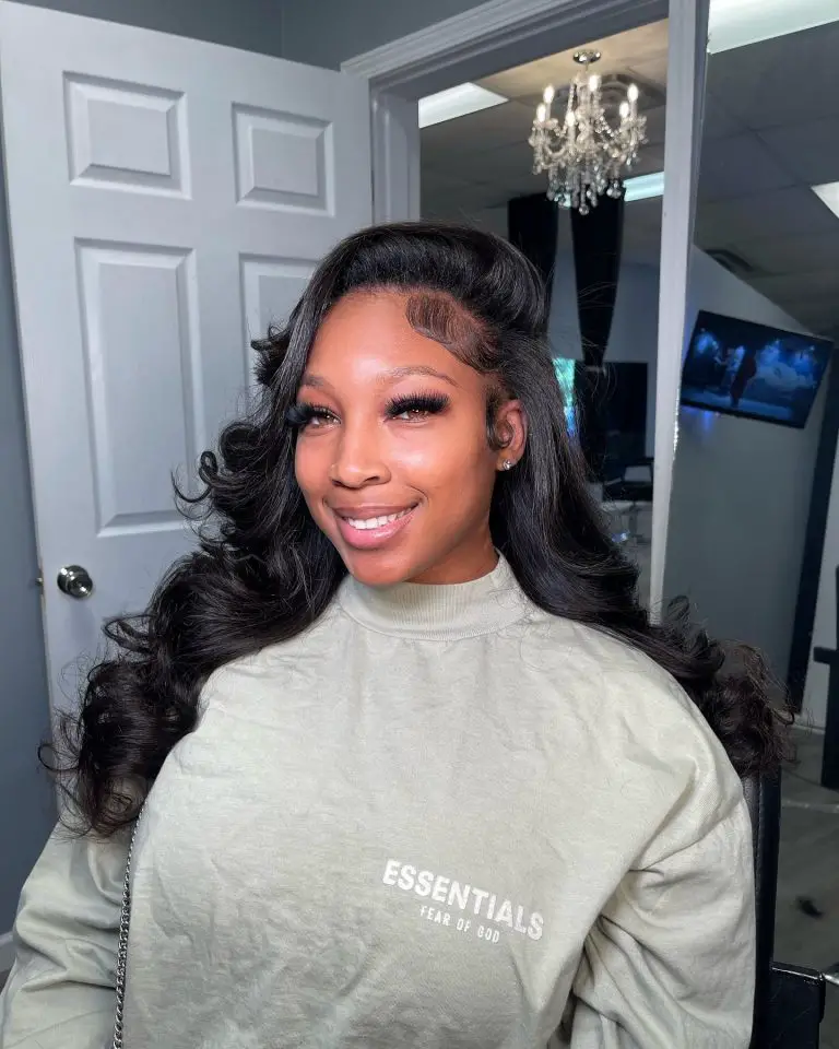 I use a 27-piece hair set for this style. The waves blend seamlessly with your natural hairline.