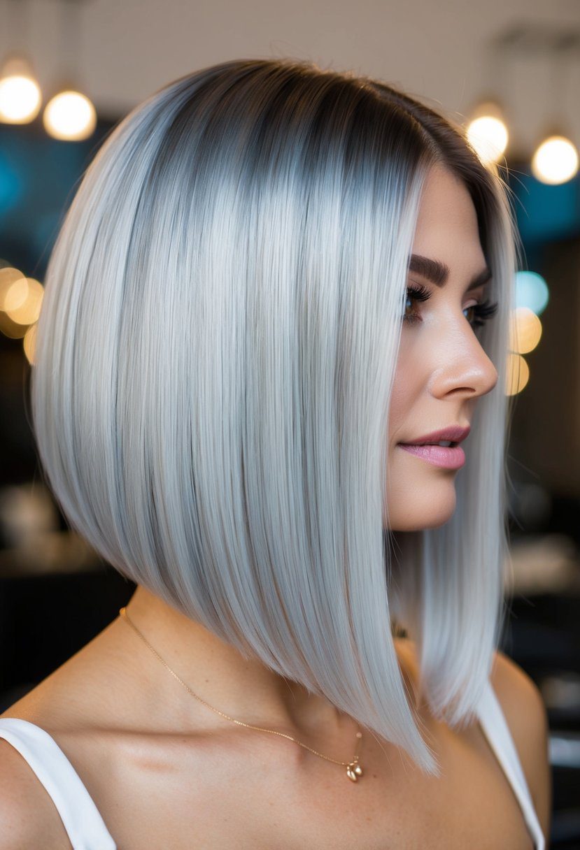 Make sure your stylist uses a purple shampoo to keep the silver bright.