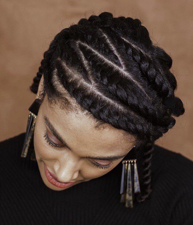 The cornrows provide structure while the flat twists add texture.