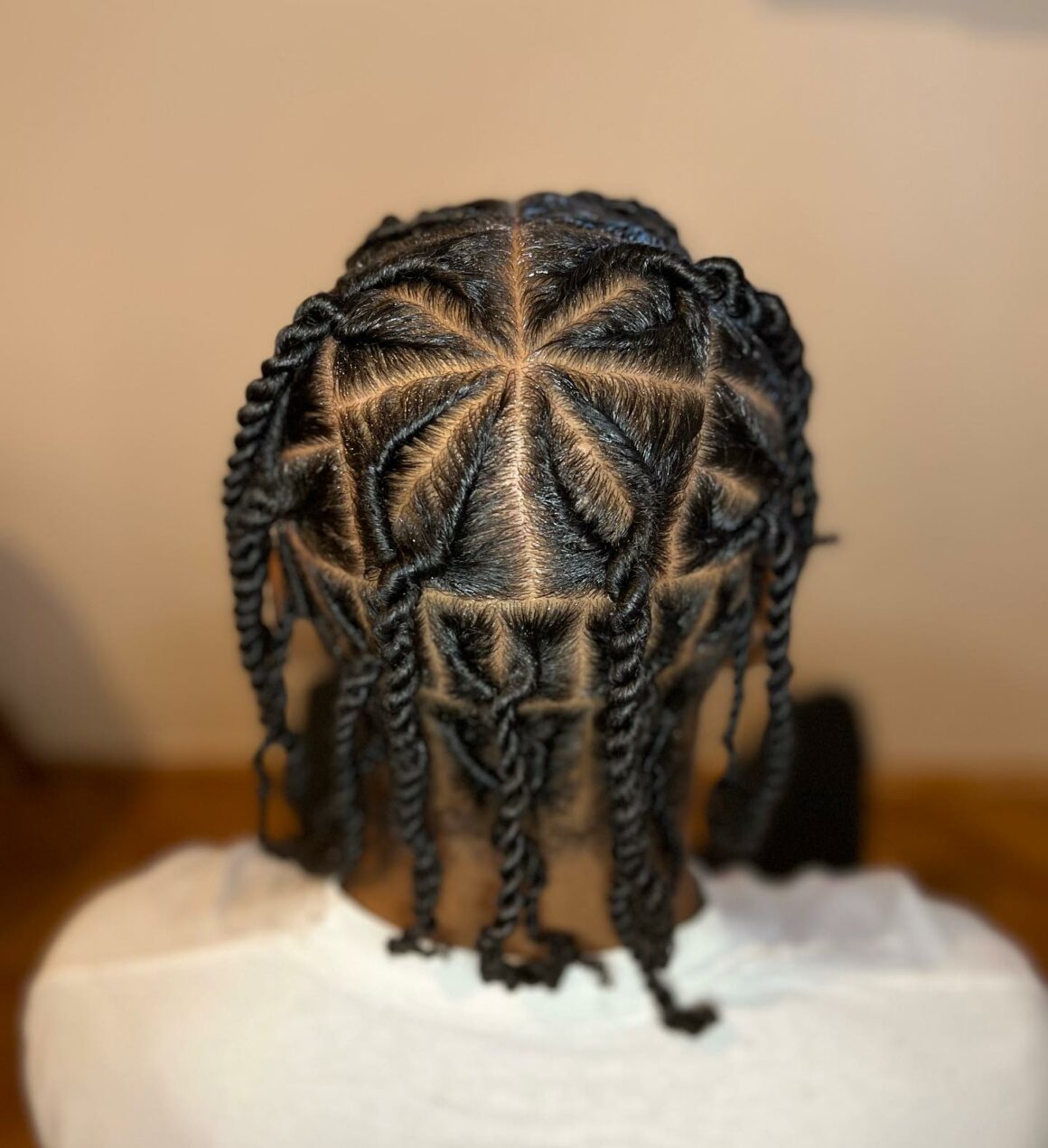 The contrast between the smooth twists and fluffy afro is stunning.