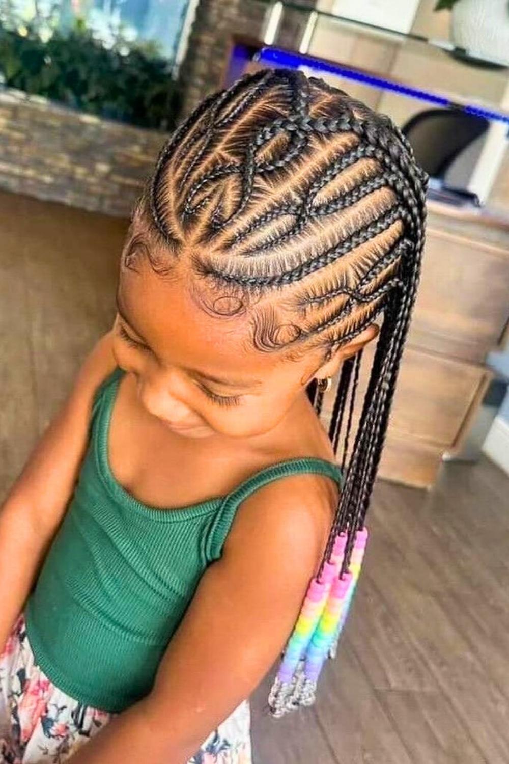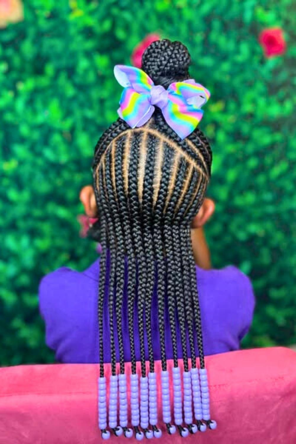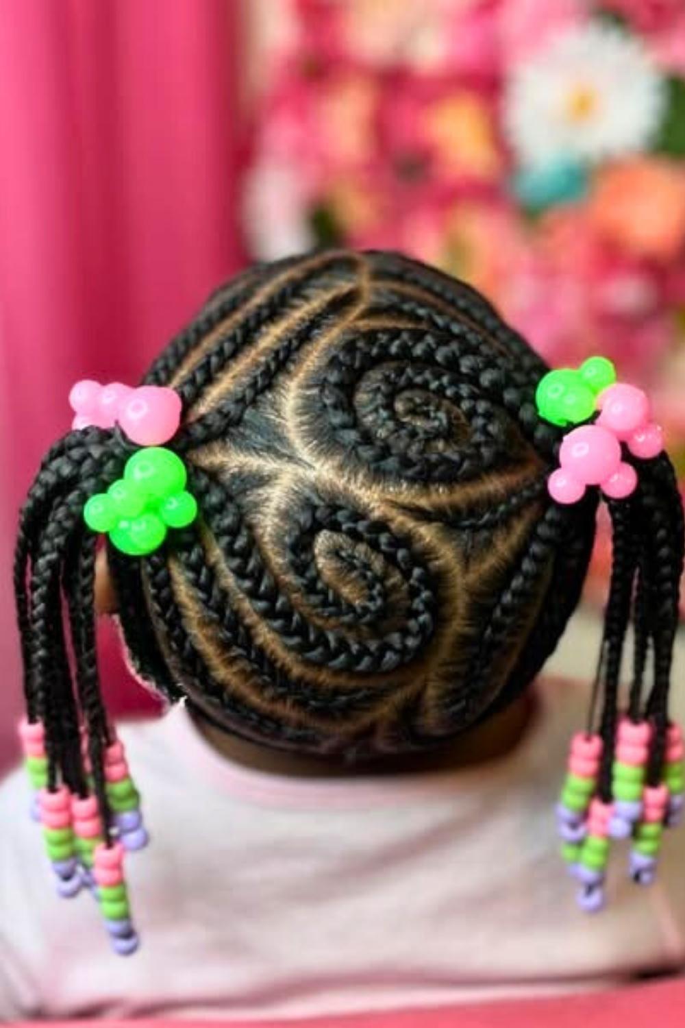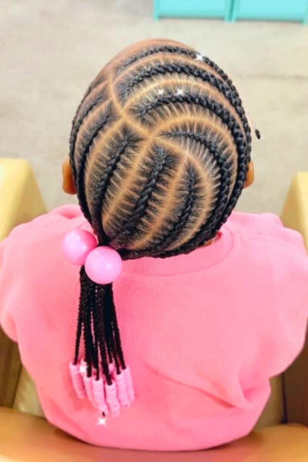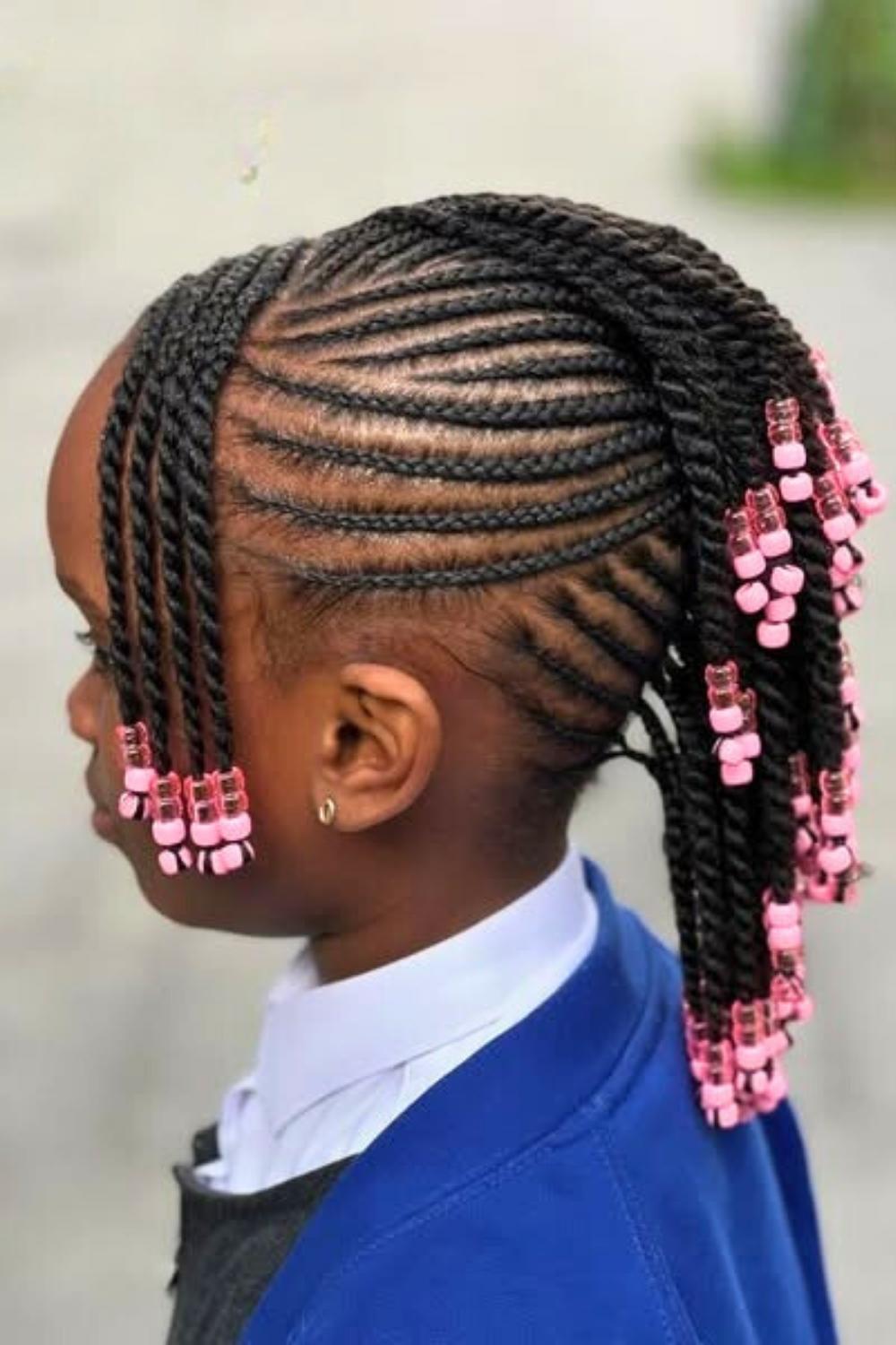Credit: @kidshairbyriGraduated lengths of braids create a waterfall effect, with pink beads flowing from short to long sections. This dynamic style adds movement and dimension while protecting hair from environmental damage. Apply moisturizing leave-in spray before styling to maintain healthy shine and prevent dryness.