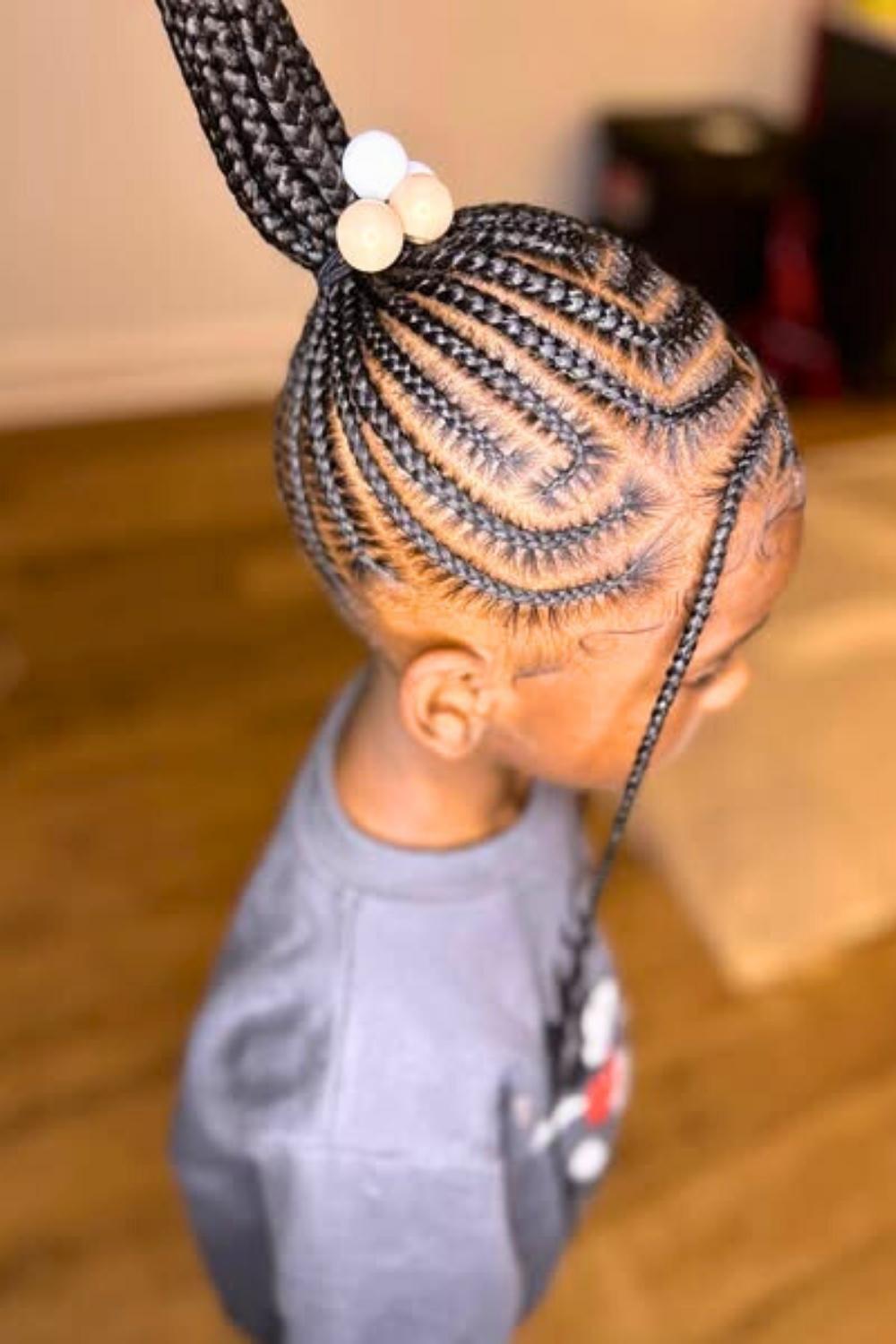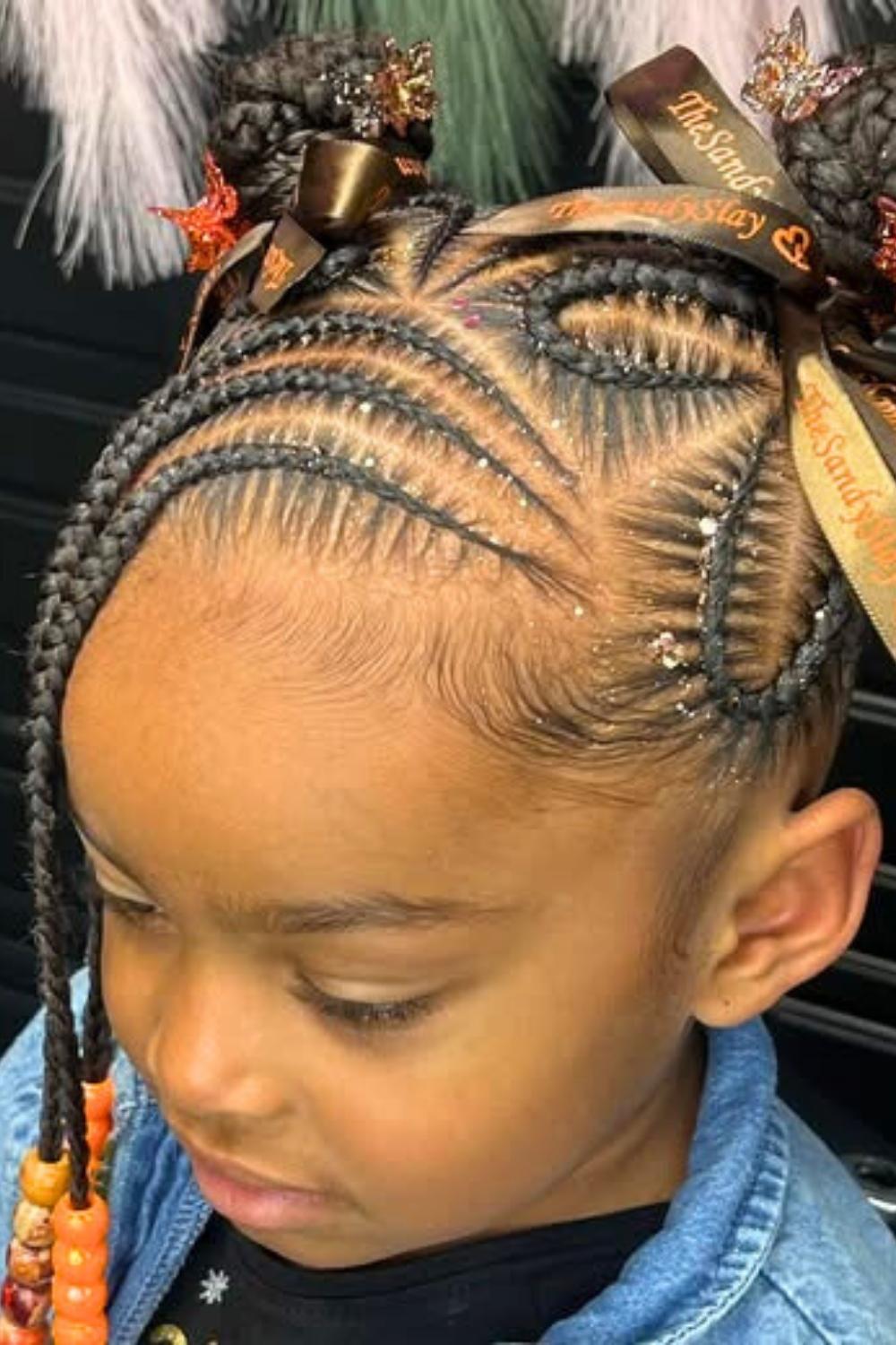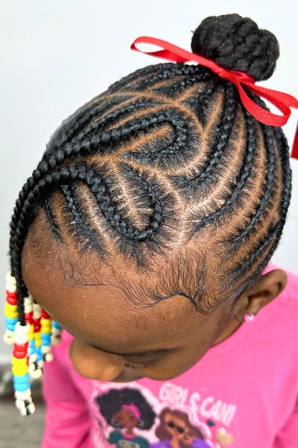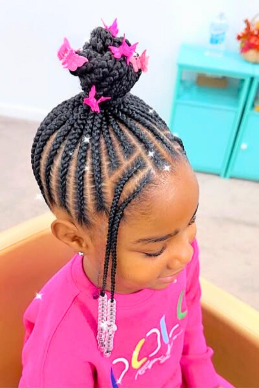 Credit: @braids_bymeeekaTwisted sections gather into a high bun, creating height and elegance while keeping hair completely off the face. Excellent for toddlers with longer hair who participate in messy activities like painting or eating. Use gentle bobby pins designed for children and accent the bun with colorful beads woven throughout.