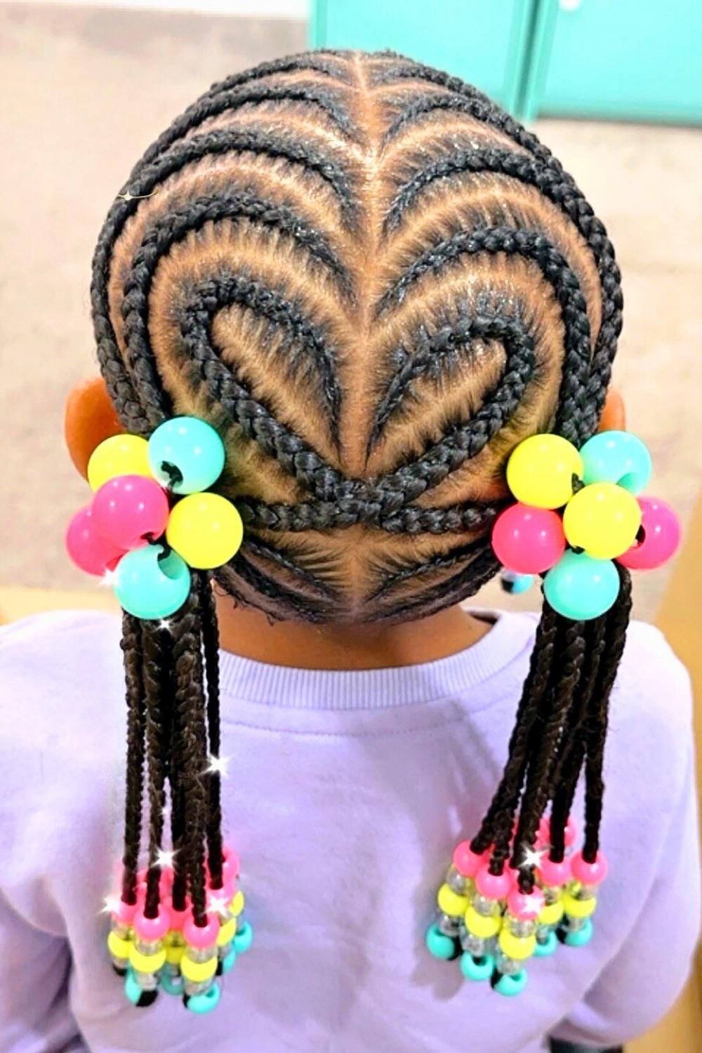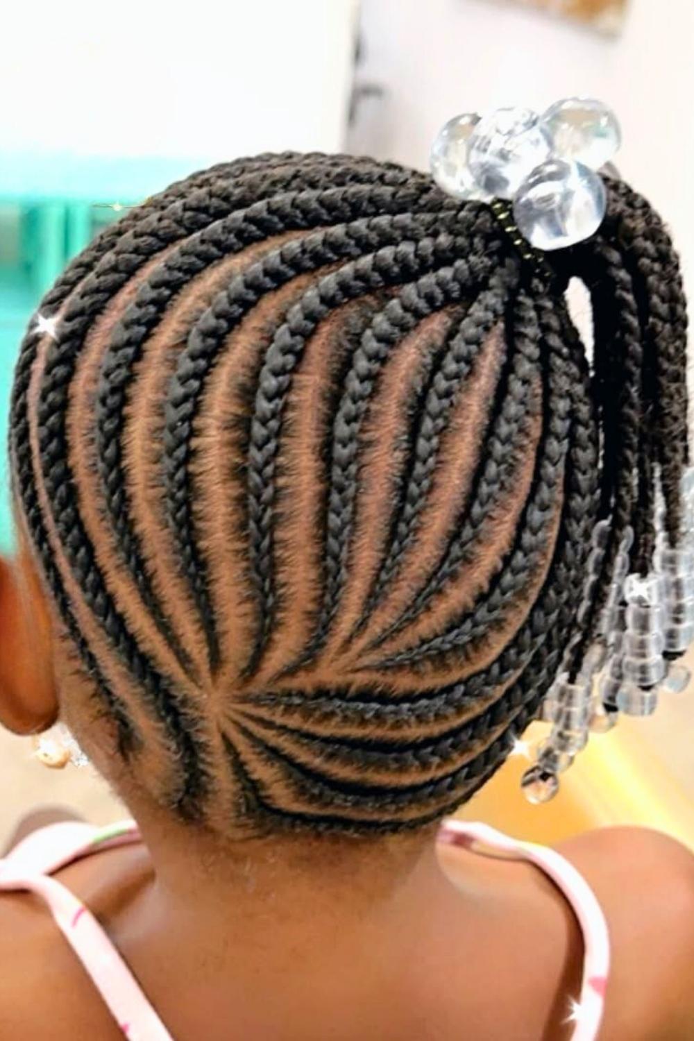 Classic cornrows meet whimsical charm with tiny bow-shaped bead arrangements at the crown. Perfect for special occasions or everyday wear, this style suits all face shapes and hair types. Apply leave-in conditioner before braiding to ensure smooth, manageable sections that won't cause discomfort during styling.