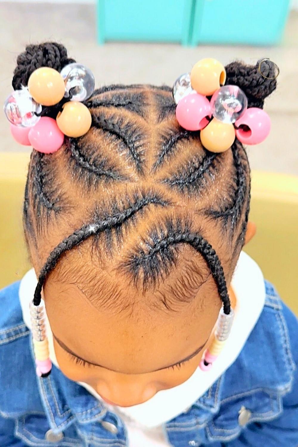 Credit: @novemberlov3Multiple small braids twisted into a star-shaped bun create a celestial masterpiece atop your little one's head. This intricate style works best for special occasions and photographs beautifully from all angles. Use small clear elastics to secure each section invisibly and add silver beads for stellar sparkle.