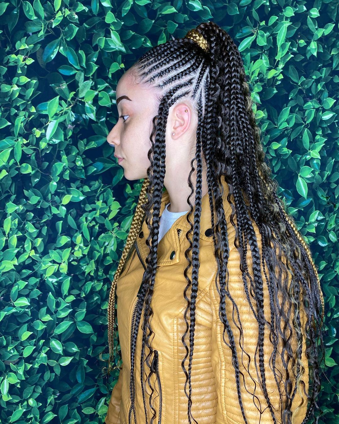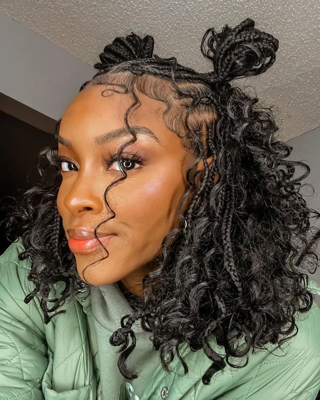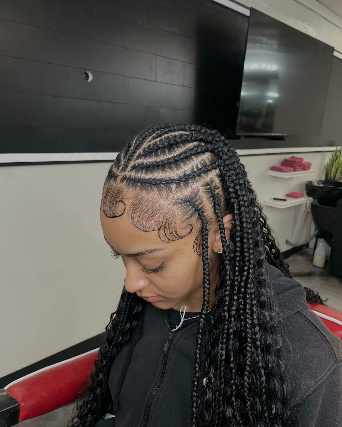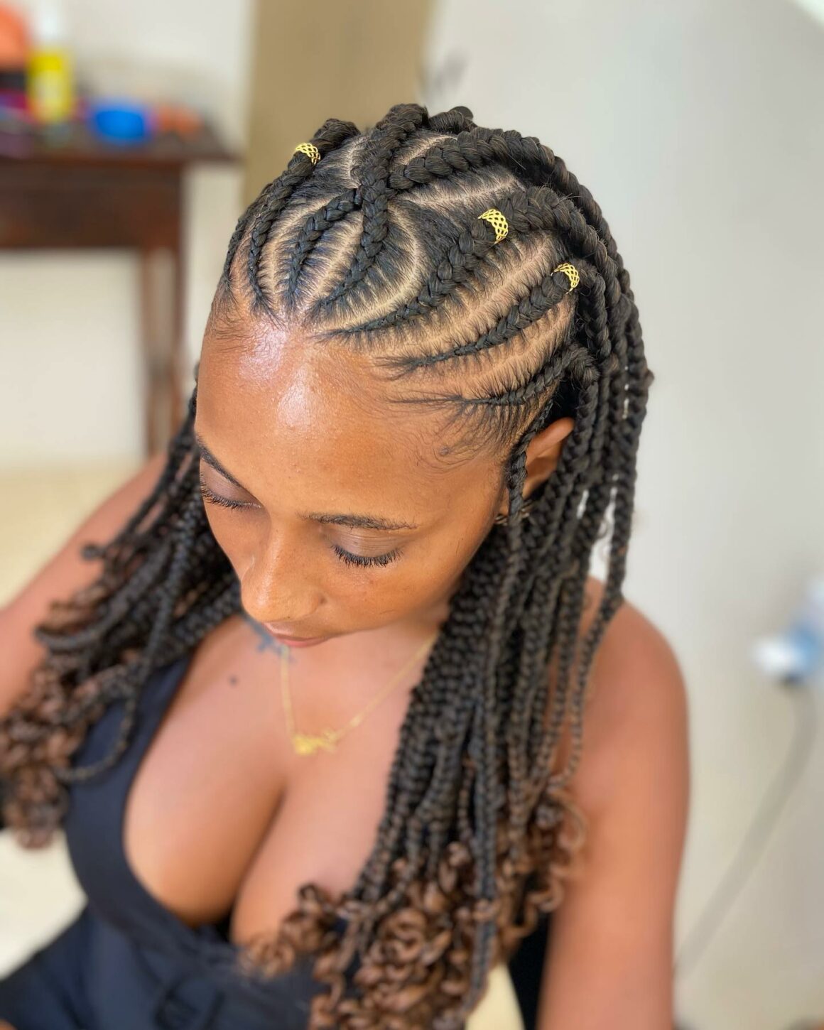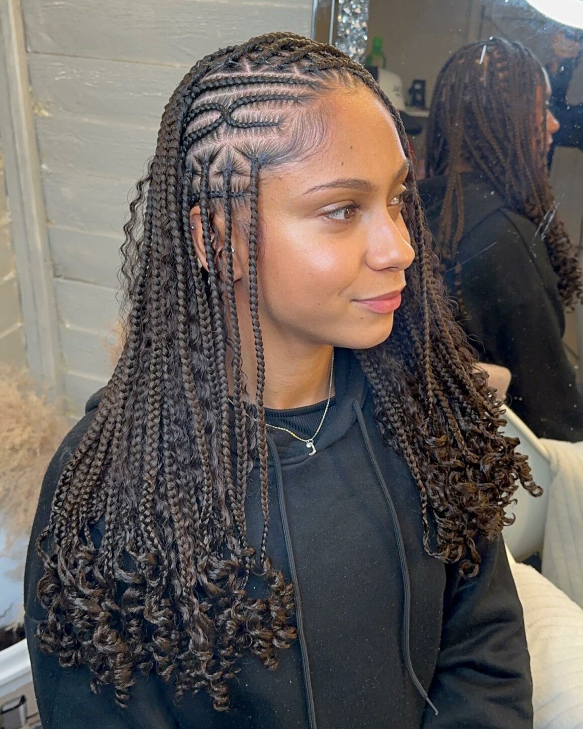 This style is pure magic, honestly. Picture this: sleek cornrows at the front that gradually transition into loose, bouncy box braids with curly ends.