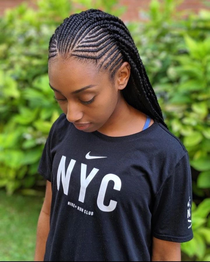 Geometric patterns are having such a moment, and this cross-pattern approach is stunning. The cornrows at the front create intersecting lines that form crosses or diamond shapes before flowing into box braids.