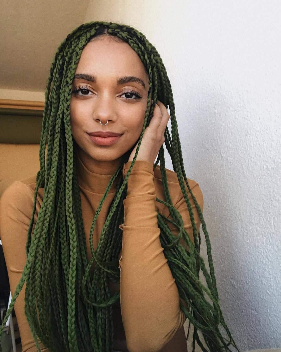 19. Olive Green Knotless Box Braid