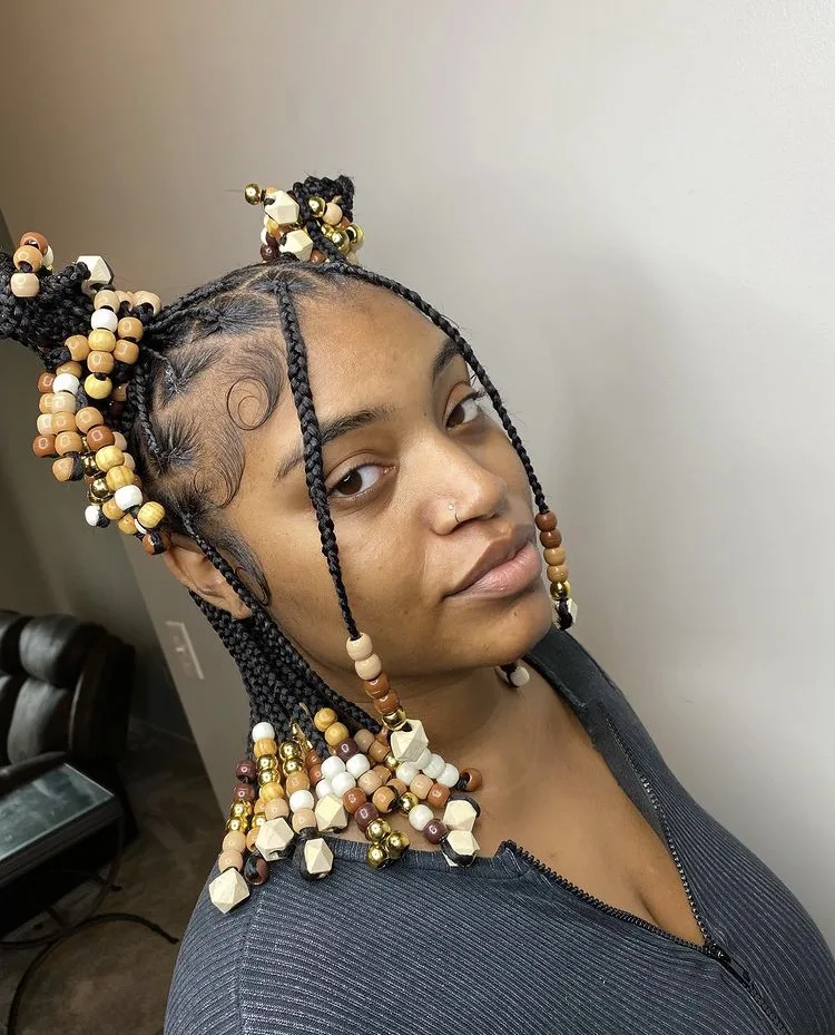 10. Short Trendy Knotless With Beads