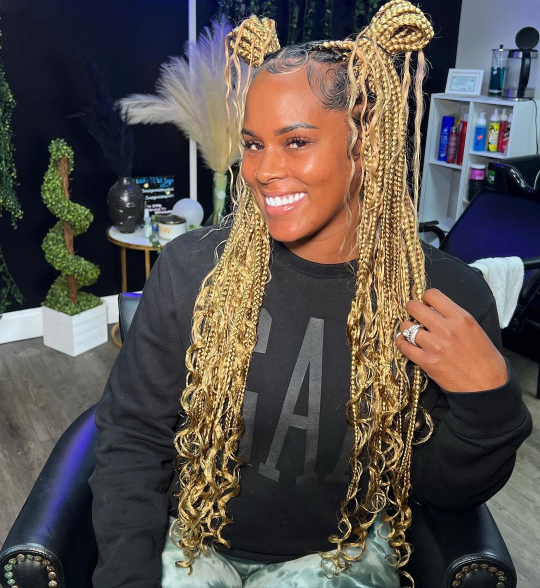 3. Knotless Box Braid With Highlight And Curls