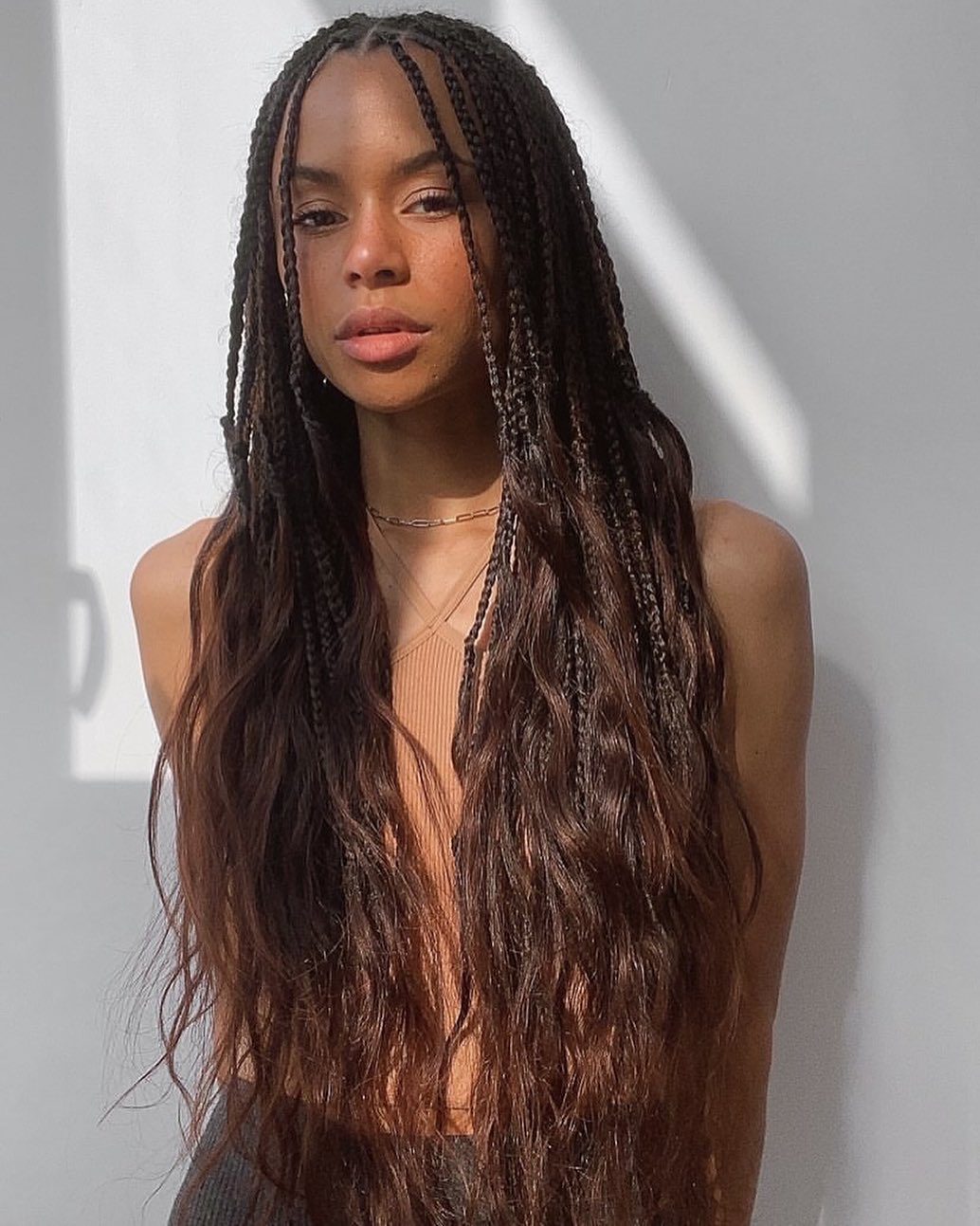 Medium-sized knotless braids that are still delicate enough to look refined but substantial enough to make an impact.