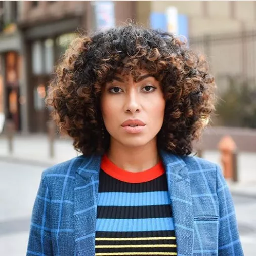 A modern interpretation of the classic shag, this cut features layers throughout to create volume and movement in curly hair.