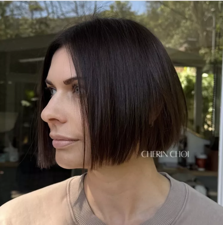 A sharp, blunt cut at chin length creates instant sophistication and structure.