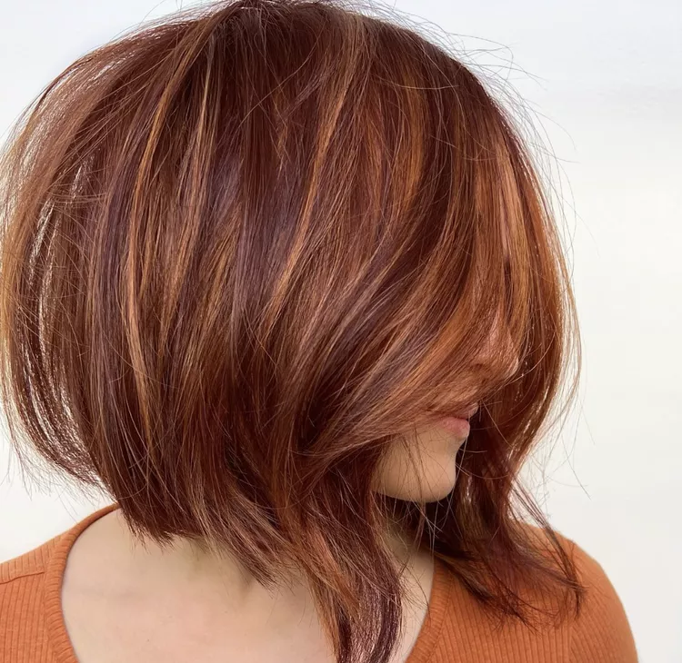 This layered bob features graduated layers that create volume and lift at the crown while maintaining weight at the perimeter.