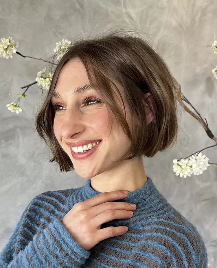 This chic, slightly shorter bob typically falls between the earlobe and chin, often paired with subtle bangs for that effortless Parisian vibe.