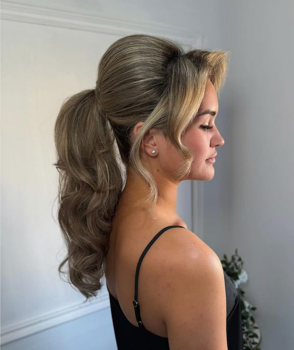 I love using a volumizing powder at the roots before creating the ponytail – it's a total game-changer.