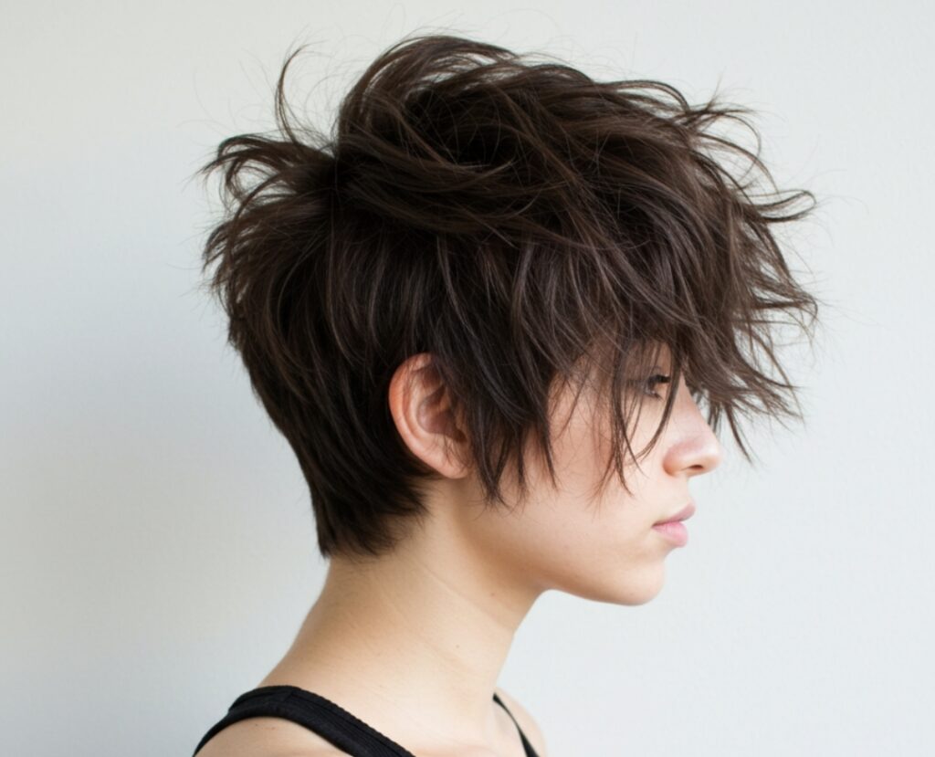 The messy, undone texture disguises any thin spots while the bangs frame your face beautifully.