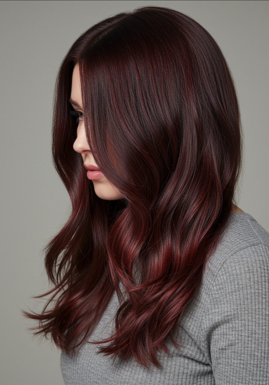 Deep wine-red tones sweep through your hair like rich velvet, creating incredible depth and dimension that looks absolutely luxurious. This classy color is perfect for fall and winter, adding warmth and sophistication to any outfit or occasion.