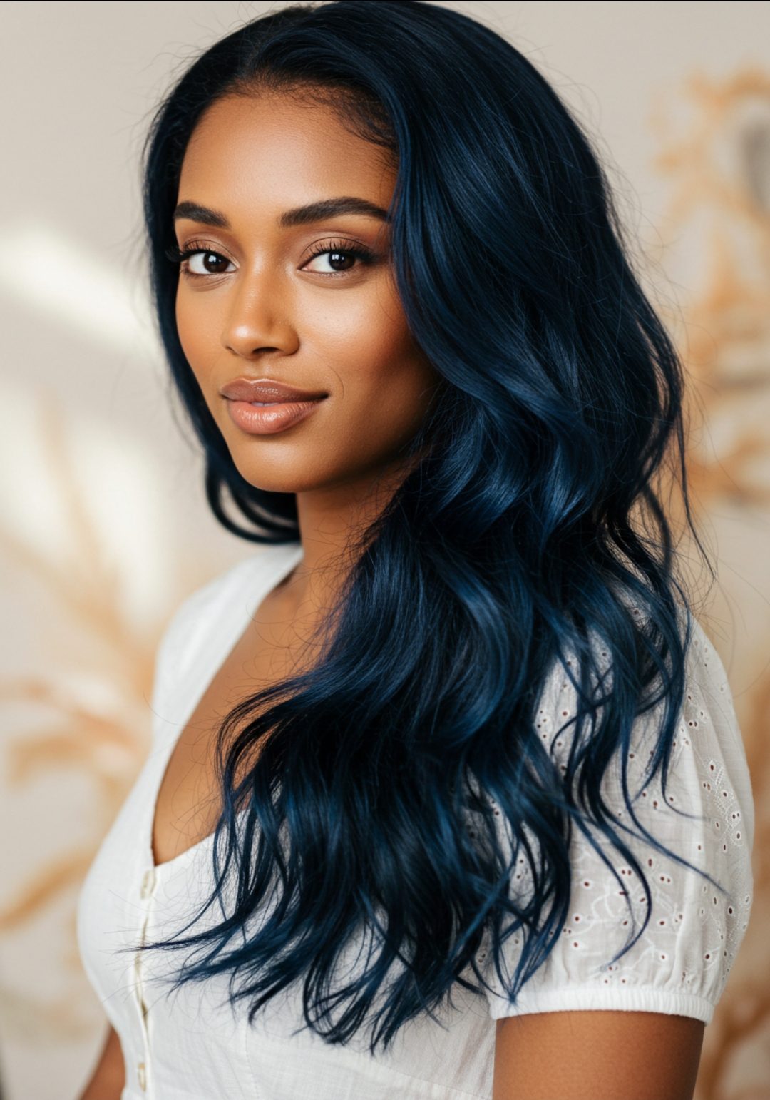Deep black hair gets a mysterious twist with hidden blue undertones that shimmer like the night sky when light hits it perfectly. This stunning color looks incredibly chic and works amazing for anyone wanting drama while still keeping things workplace-appropriate and elegant.