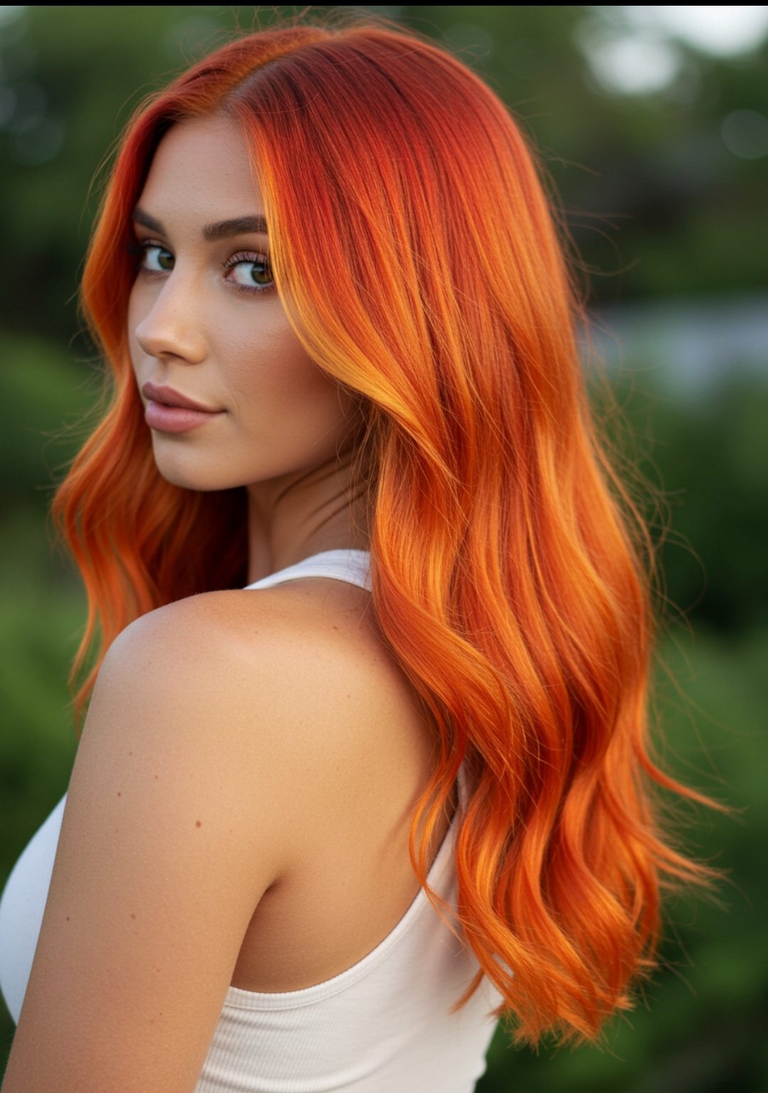 Warm orange tones gradually fade from deep copper to bright tangerine, creating a beautiful gradient that looks like a gorgeous sunset in your hair. This adorable color works amazing on medium to long hair and brings such warmth to your overall look.