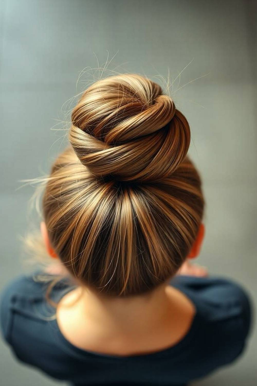 Elevate the basic messy bun by incorporating a simple twist that adds visual interest without extra time.