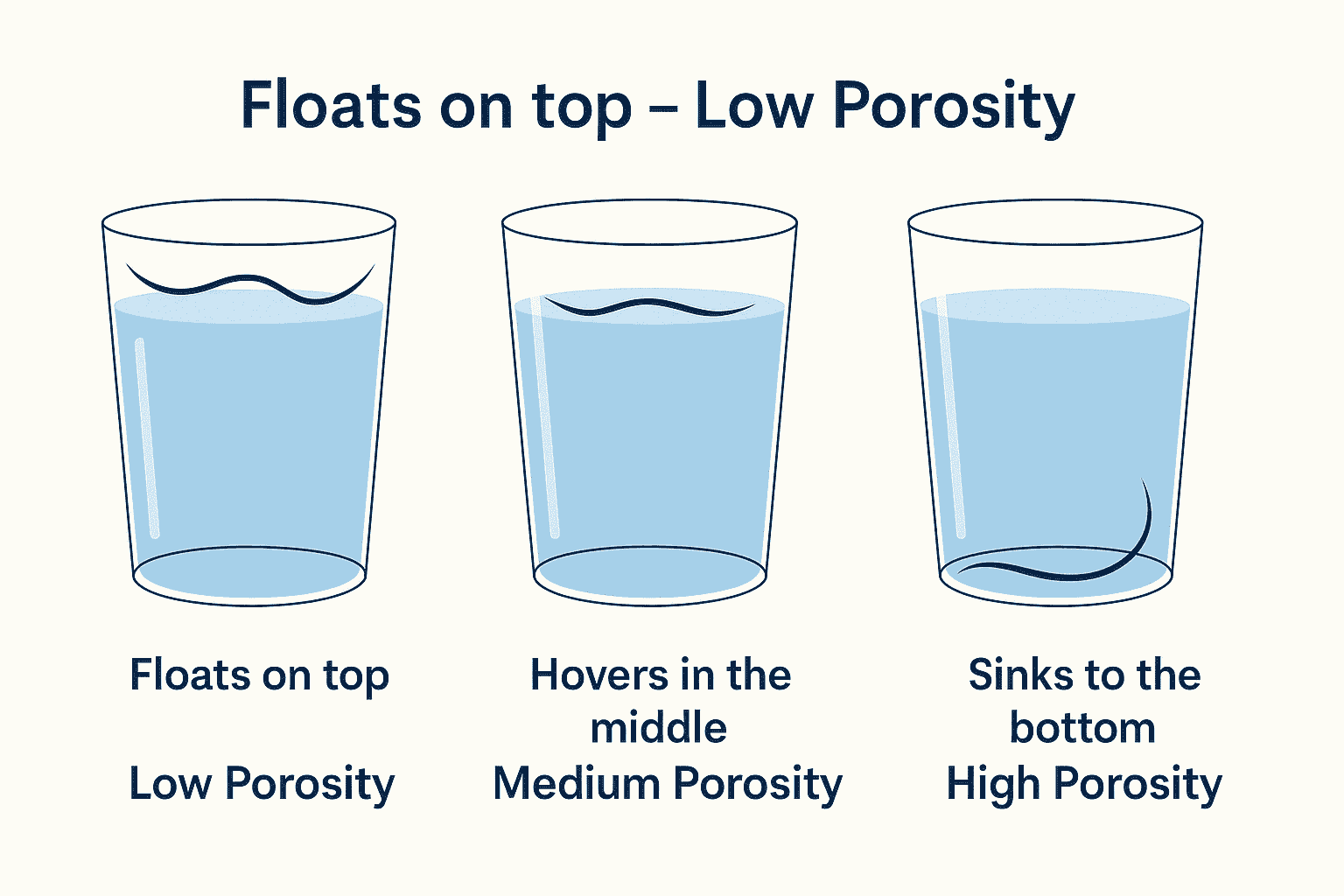 - Feel Test: Run fingers from roots to ends. Bumpy texture? High porosity. Smooth? Low porosity.
